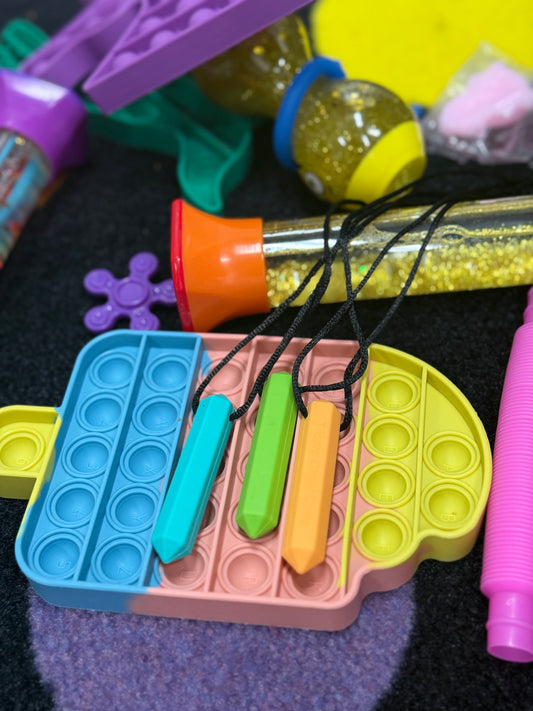 Chewing offers more than just oral comfort — it provides important sensory input that helps children feel calmer and more focused. The act of chewing gives the jaw deep pressure feedback, known as proprioceptive input, which supports body awareness, self-regulation, and a sense of calm. It can also engage the muscles of the head and neck, supporting balance and posture, which ties into the vestibular system. Just like how chewing gum can help adults concentrate, relieve stress, or stay alert, chew tools offer children similar benefits in a safe and appropriate way.