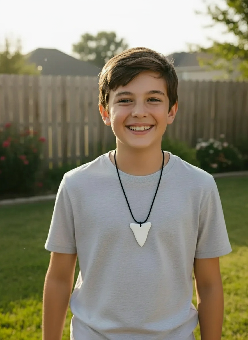 Discover the perfect blend of style and sensory relief with this shark tooth-shaped pendant. Ideal for medium to strong chewers, it offers a durable solution to manage stress anywhere you go.